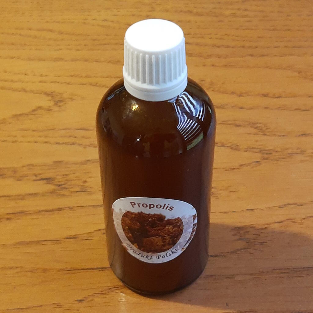 Propolis z własnej pasieki na wodzie, bez alkoholu.